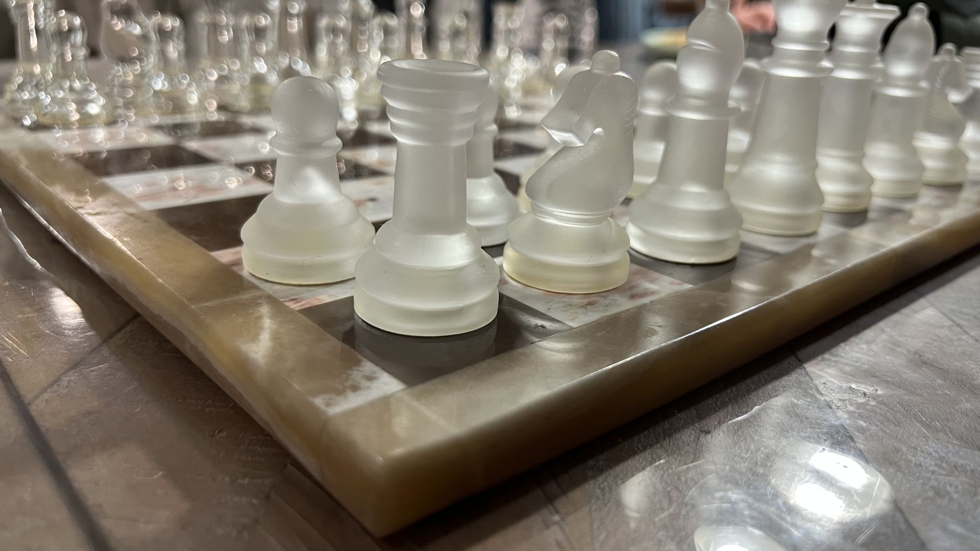 Glass Chess Set with Marble Onyx Board – Complete Decorative Chess Set