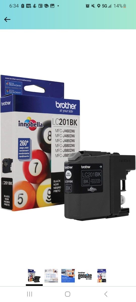 Brother Genuine Standard Yield Black Ink Cartridge, LC201BK