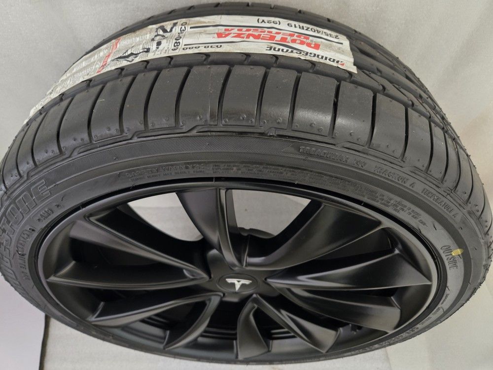 Beautiful black oem Tesla wheels New 235 40 r19 tires ready to go