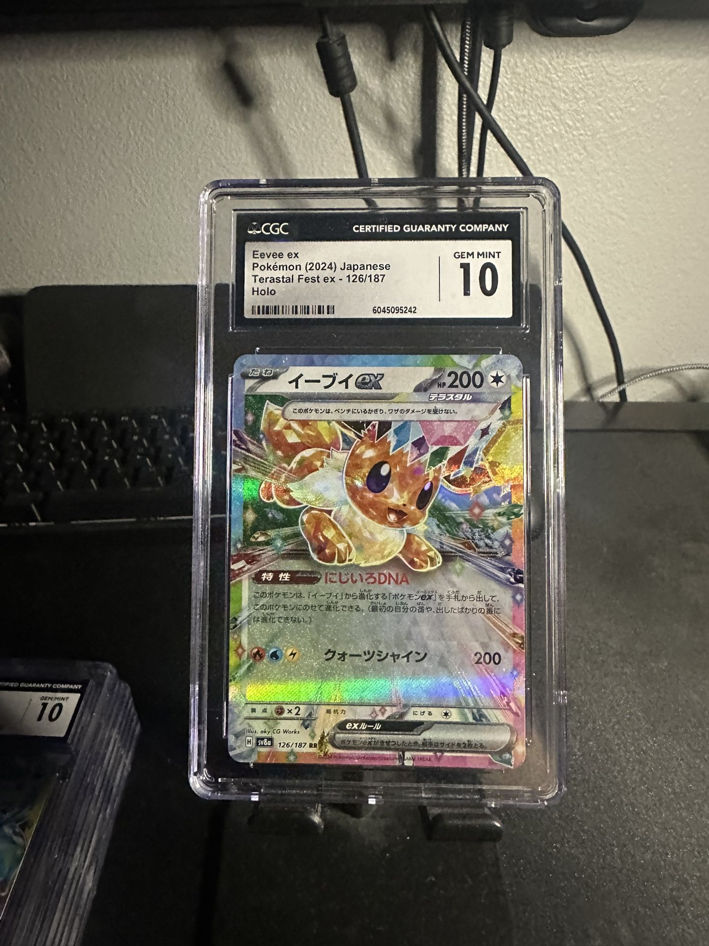 Eevee ex Pokémon (2024) Japanese Terastal Fest ex - 126/187 Holo Vaporeon ex Pokémon (2024) Japanese Terastal Fest ex - 031/187 Holo Jolteon ex Pokémon (2024) Japanese Terastal Fest ex - 052/187 Holo Leafeon ex Pokémon (2024) Japanese Terastal Fest ex - 003/187 Holo Glaceon ex Pokémon (2024) Japanese Terastal Fest ex - 041/187 Holo Flareon ex Pokémon (2024) Japanese Terastal Fest ex - 022/187 Holo Espeon ex Pokémon (2024) Japanese Terastal Fest ex - 063/187 Holo Sylveon ex Pokémon (2024) Japanese Terastal Fest ex - 069/187 Holo Umbreon ex Pokémon (2024) Japanese Terastal Fest ex - 093/187 Holo Japanese prismatic evolution, all trades in open too
