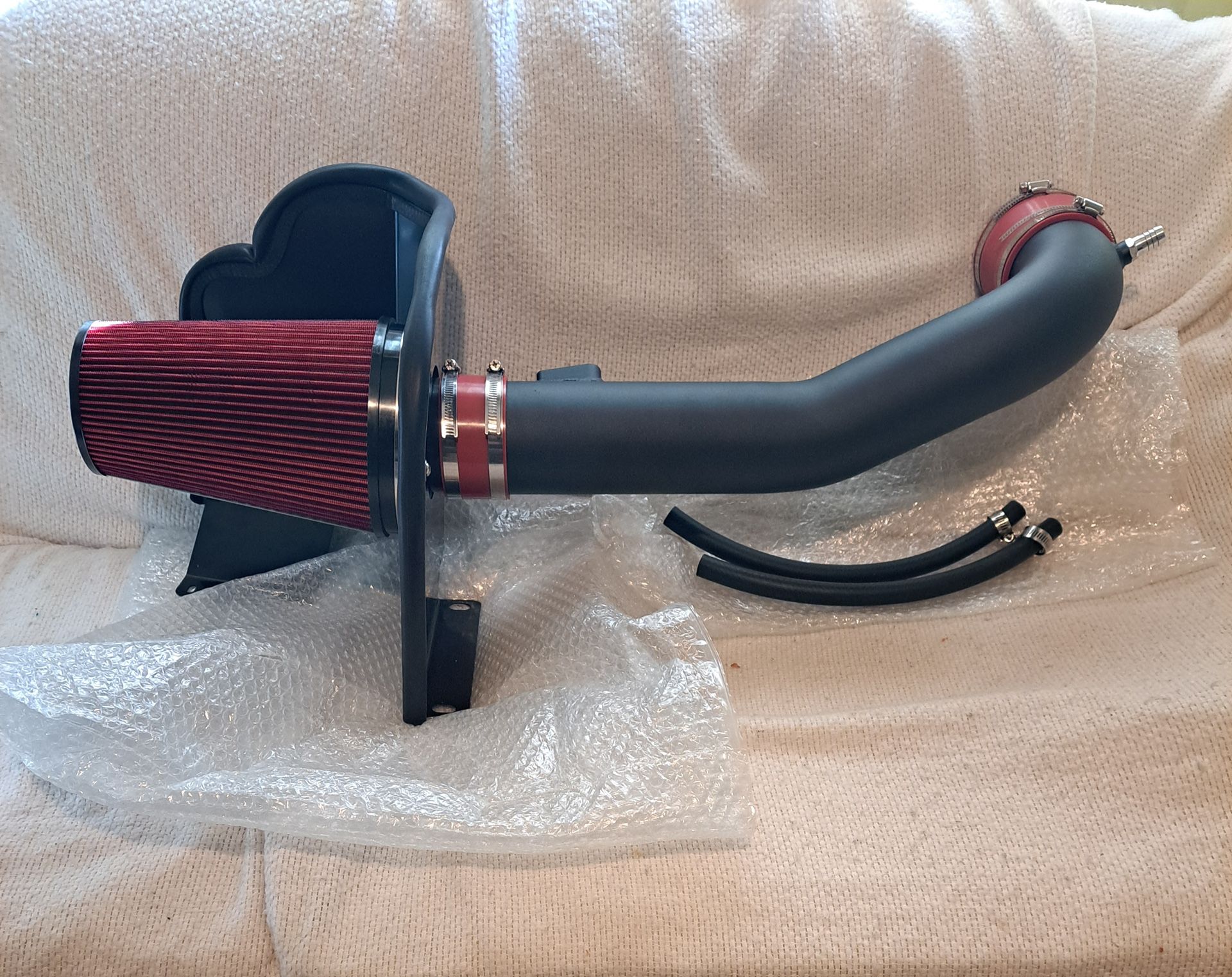 FIRM AT $110 NO OTHER OFFERS ACCEPTED. Cold air Intake kit. Brand new in the box. Fits 2014 to 2019 Chevy Silverado, tahoe, Suburban and gmc Sierra, Yukon, Denali, Cadillac Escalade. With v8 5.3 6.2 engines and vo 4.3. really nice Intake. Adds power and looks Message me only if you're interested and ready to buy thanks. Can install for an extra $30 message me only if you're serious and ready to buy.
