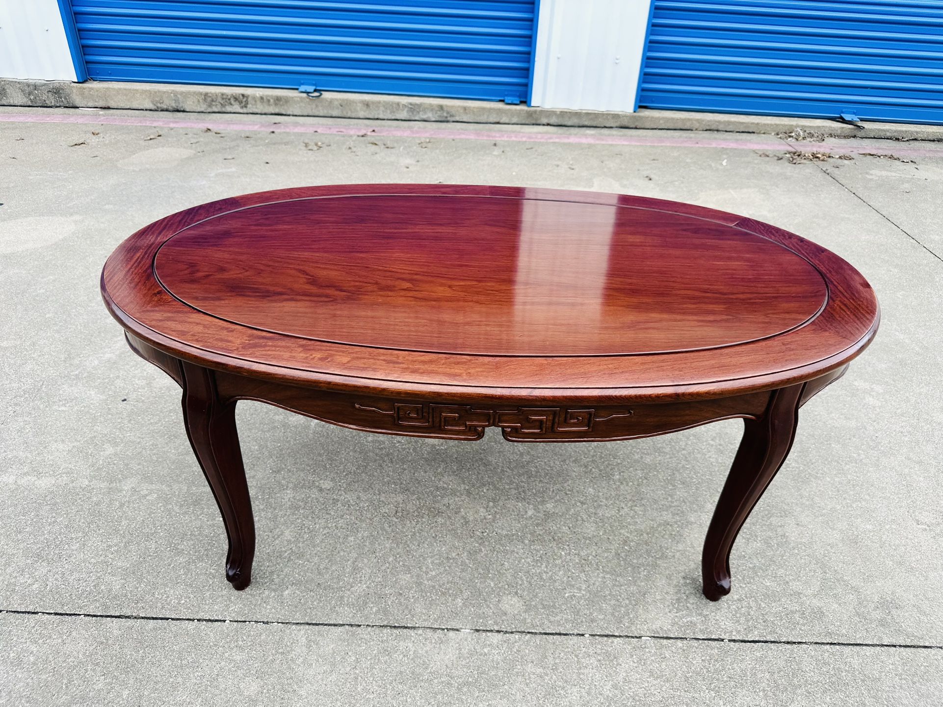 Beautiful Mid Century Modern Chinese Solid Rosewood Oval Carved Coffee Table