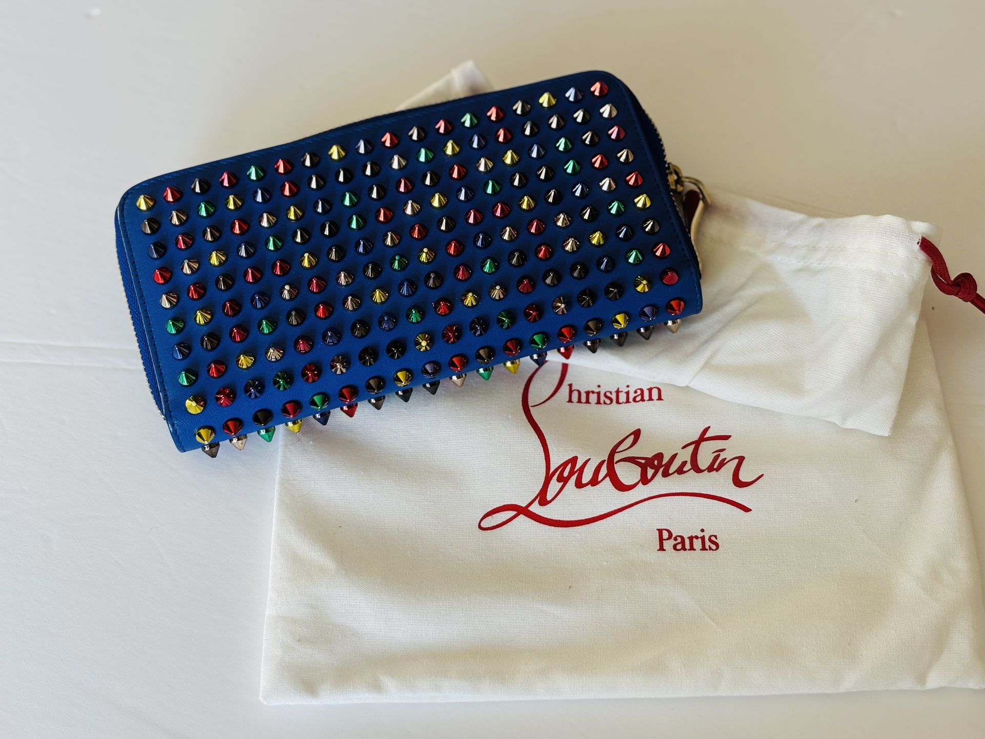 AUTHENTIC CHRISTIAN LOUBOUTIN;MULTICOLOR STUDDED BLUE WALLET