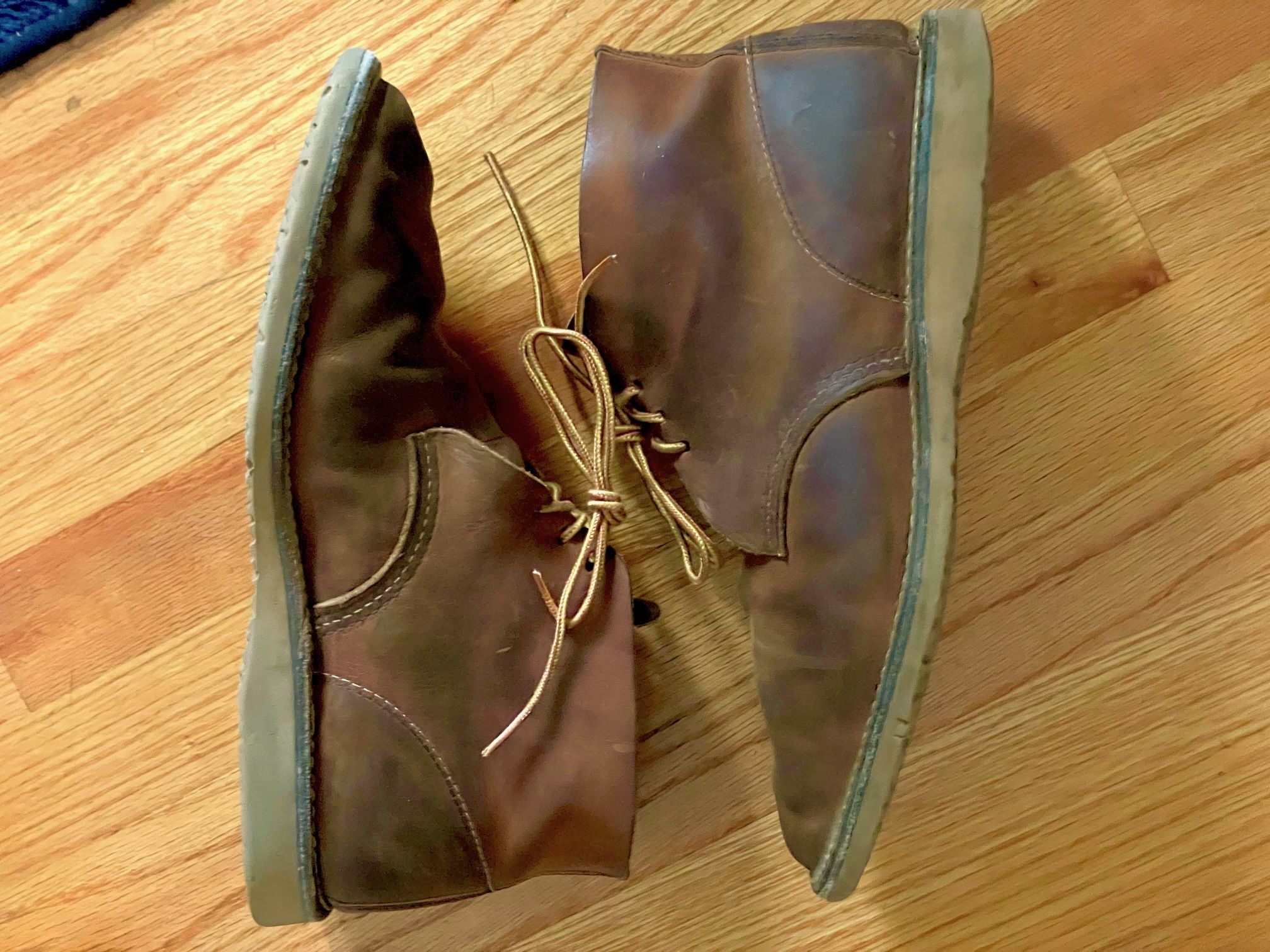 Broken in, very comfortable. New set of Red Wing laces Size 10.5 US men’s Soles have some wear but plenty of life left