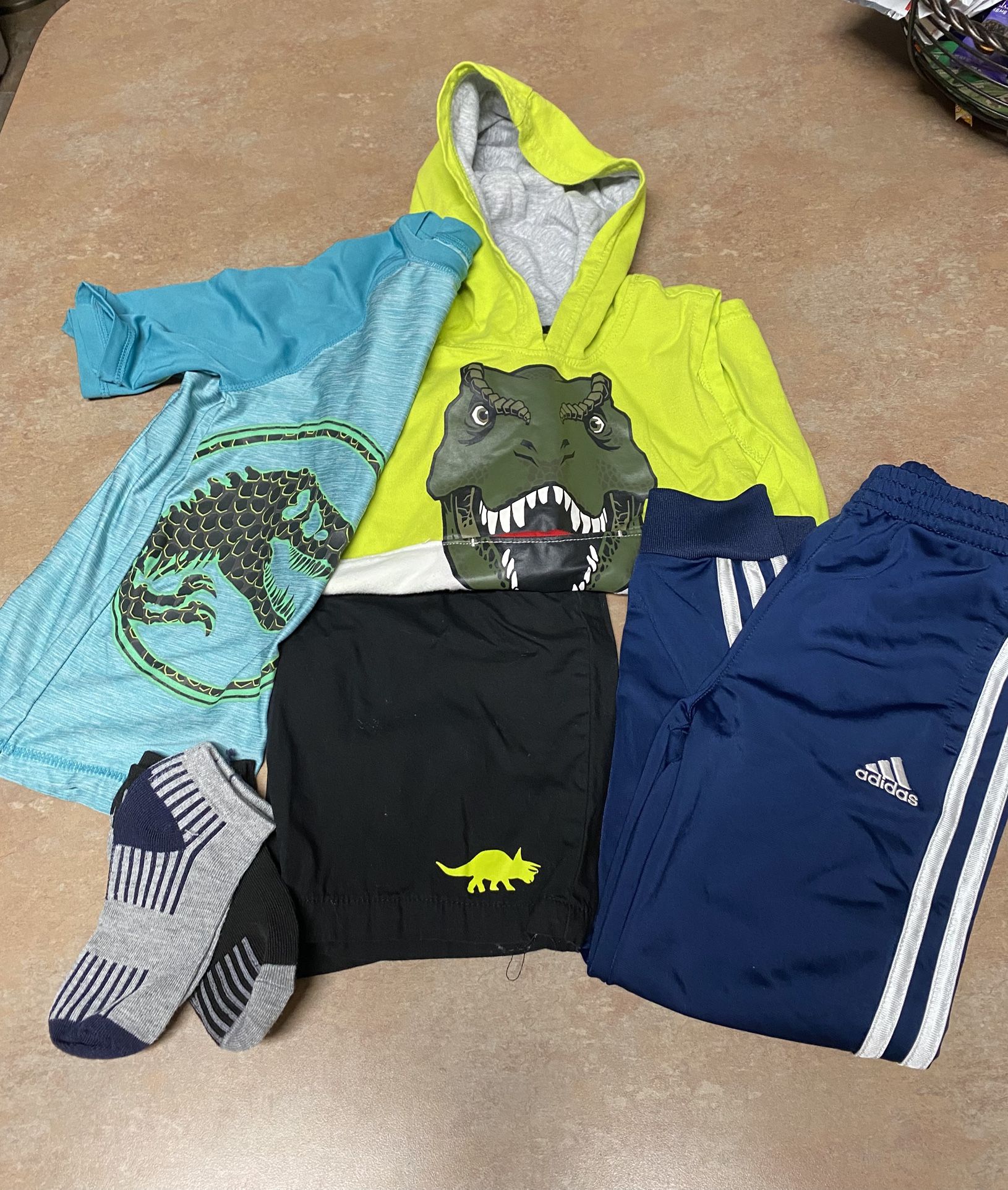 Boys Clothes Lot SZ 5 6 7 Adidas Pants Jurassic World Dinosaur Shirts Shorts Socks