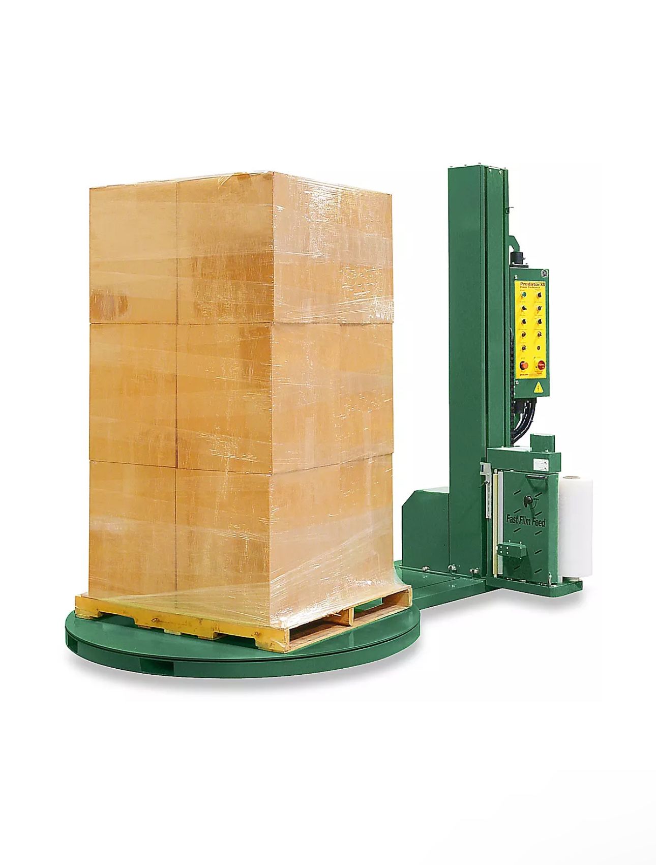 Everything works perfectly fine without any issues. It also comes with a Ramp, which costs $1200+ more. We also have black wrapping paper and we could discount it. Pre-stretches film 230% or 270% for speed and efficiency. Uses up to 80% less stretch wrap than our semi-automatic machine. Wraps pallets tightly without damage, including light and irregular loads. Wraps approximately 30 loads per hour – 12 RPM variable speed turntable. Two wrap modes – Select spiral up and down or spiral up only. Convenient photo eye – Allows operator to walk away.q Automatically cuts film at the end of the wrap cycle. Side mounted carriage with fast film feed. 115 volt, 15 amp. Sorry, no returns accepted on this item. Use with 20" wide Machine Length Stretch Wrap.