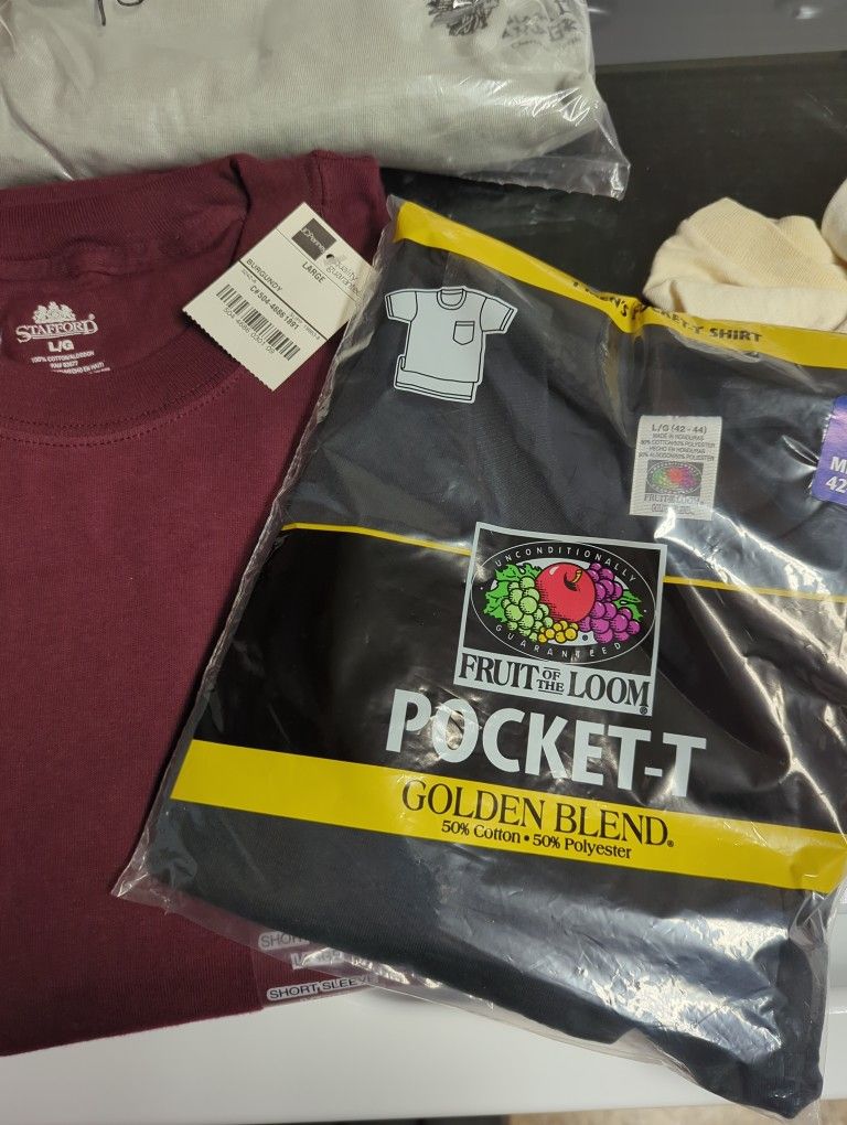 Vintage Fruit Of The Loom Golden Blend Pocket T-shirt And Stafford Short Sleeve Pocket T-shirt