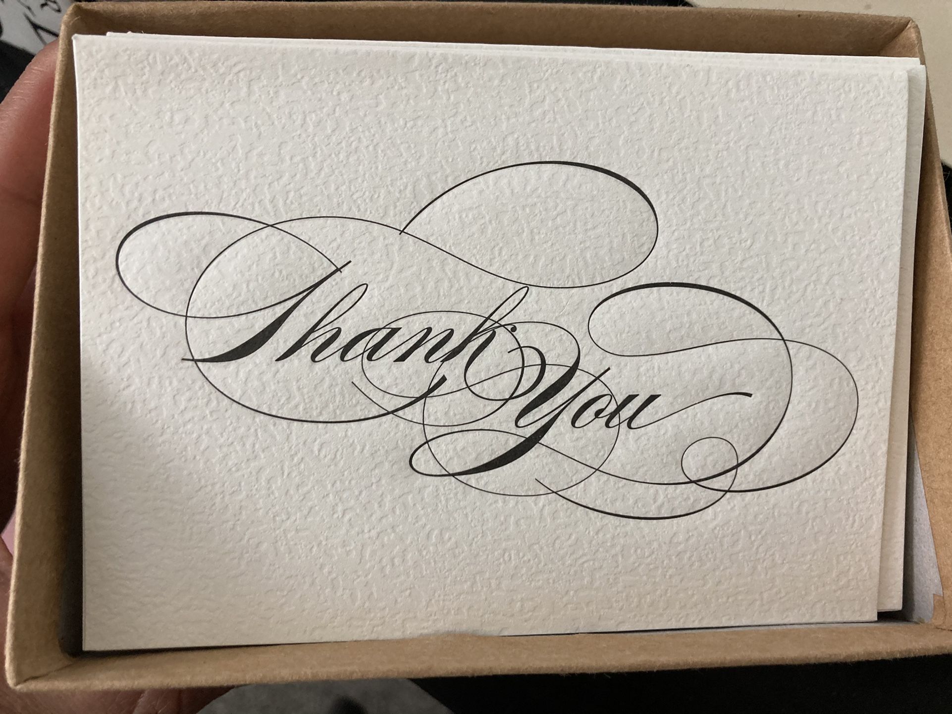 Box of 50 blank Thank You cards on cream ivory parchment texture paper. Size: 4 7/8 inches x 3 1/2 inches. It comes with 50 envelopes. Thank you for looking!