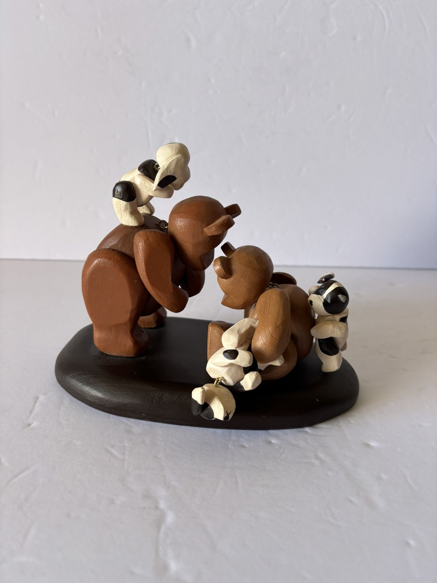 Moveable Wooden Pozy Teddy Bears With Dog Figurine