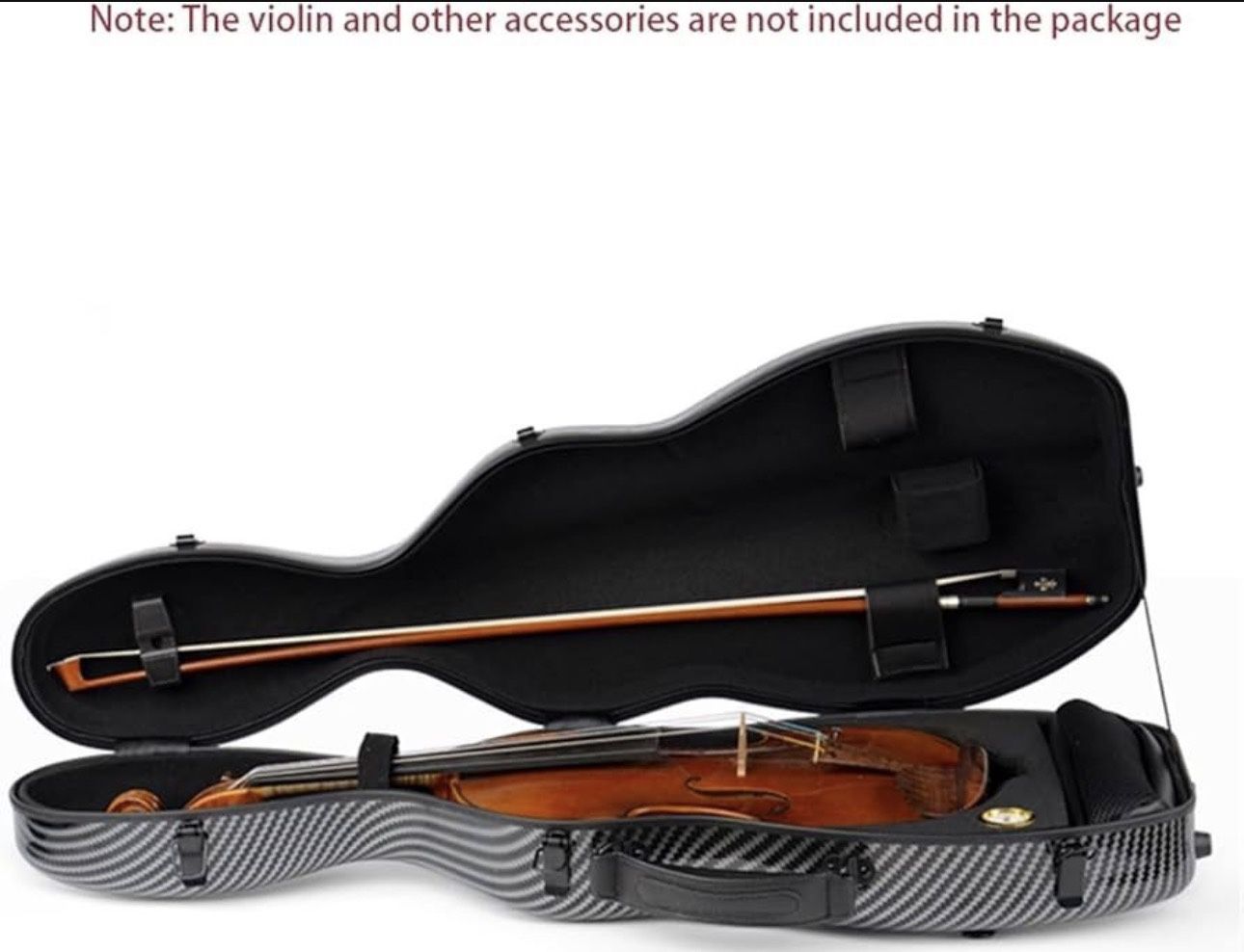 Black Stripe - 4/4 Size Violin Case, Carbon Fiber with Hygrometer 2, Violin Stand, Full Size Brand New D660