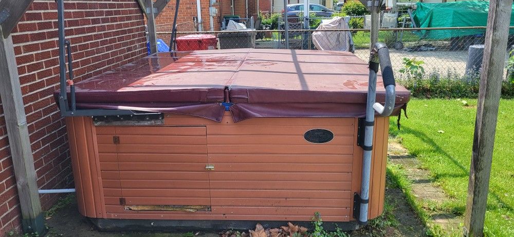 16 years old, beautiful blue. Pump and jets work great. slow leak from pipe underneoth somewhere, filled up 1 foot everyday last year. Unable to get to pipe to fix ourselves. Make an offer and pick it up and it's yours!!