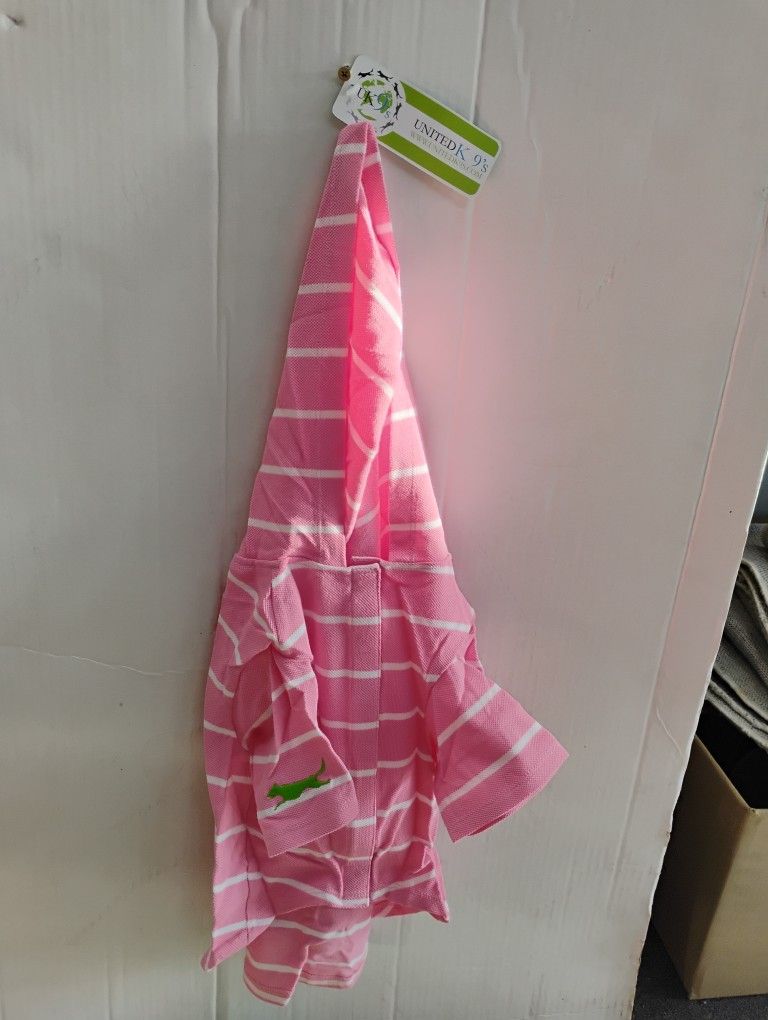 United K9's pink and white striped hooded dog pajama with a dog logo 14.3" 100% cotton.