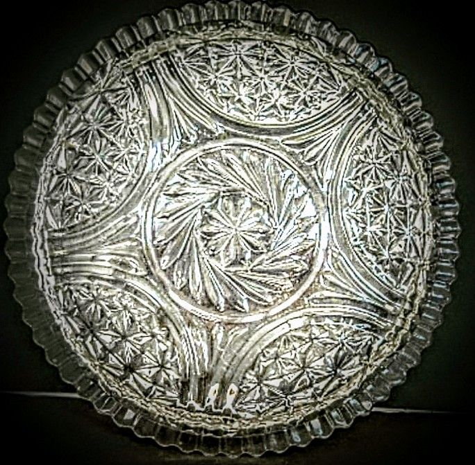Vintage Pressed Clear Glass Diamond Cut Serving Platter 12"