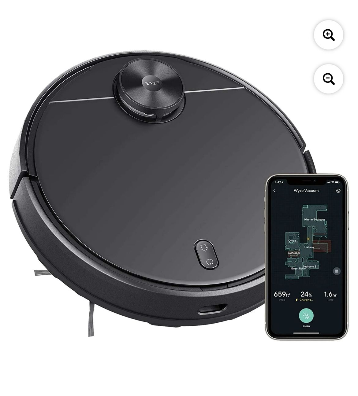 Wyze Wi-Fi Connected Robotic Vacuum with LiDAR Room Mapping, Ideal for Pet Hair, Hard Floors and Carpets