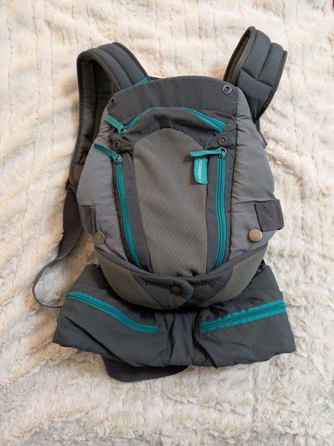 Infantino Baby Carrier - looking for it's next little one to love. Versatile for facing inwards, outwards, and to wear on your back. Simple, easy to use, comfortable.