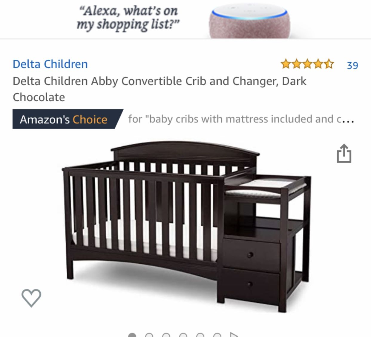 Delta children Abby crib and changing table. Dark cherry