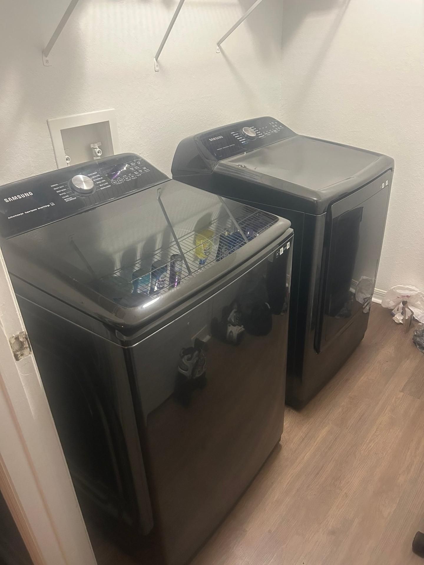 5.4 cu. ft. Smart Top Load Washer with Pet Care Solution and Super Speed Wash 7.4 cu. ft. Smart Electric Dryer with Pet Care Dry and Steam Sanitize+