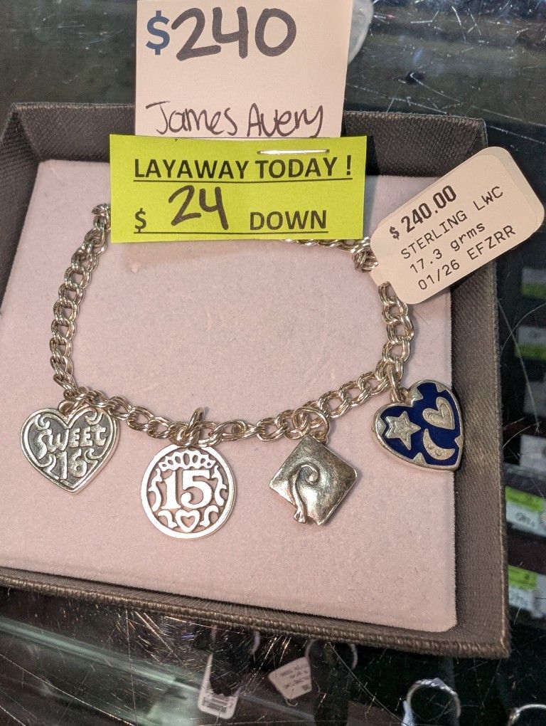 4 charms James Avery 7 in bracelet $240+tax or $24 down for 3 monthly payments ASK FOR ALEXA 2835 s shaver st Pasadena Texas 77502 #fcp2287