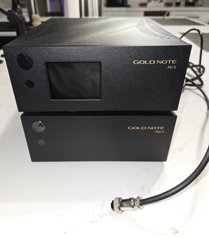 Gold Note ph-5 Phono Pre-amp With Power Supply with only about 20 hours totalistening time. This setup provides amazing clarity, detail, and punch from your vinyl records. I paid $1,725 new so at this price, the total savings is $500 for like new units.