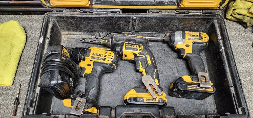 3 pc drills in good used working condition. 2 batteries 1 charger 1 Hard case.