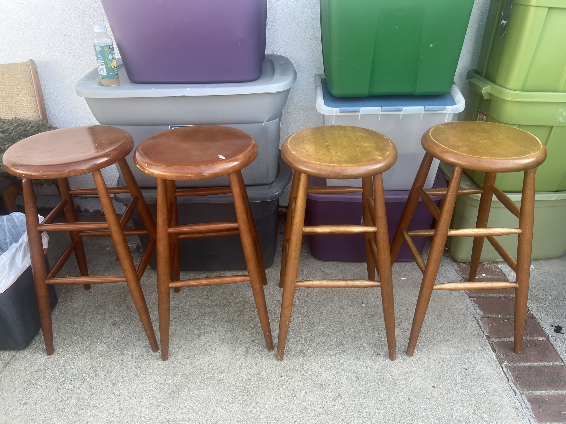 4 vintage wooden stools / sturdy wooden stools / bar stools / antique stools