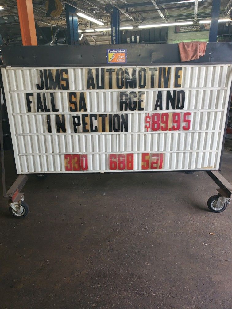 Sign frame and where the letters go is in good shape. Lighting will need rewired. Casters roll and turn as they should. Been stored inside. Have letters as well.