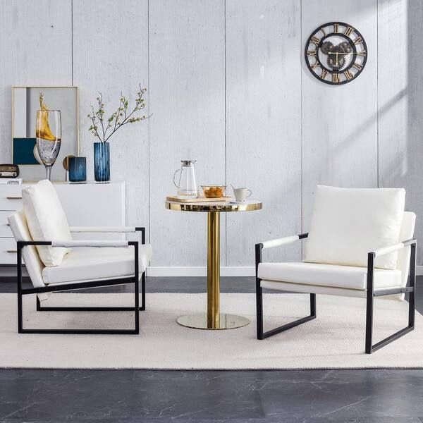 Set Of 2 - White PU Leather Modern Armchairs w/ Metal Frame [NEW IN BOX] **Retails for $300
