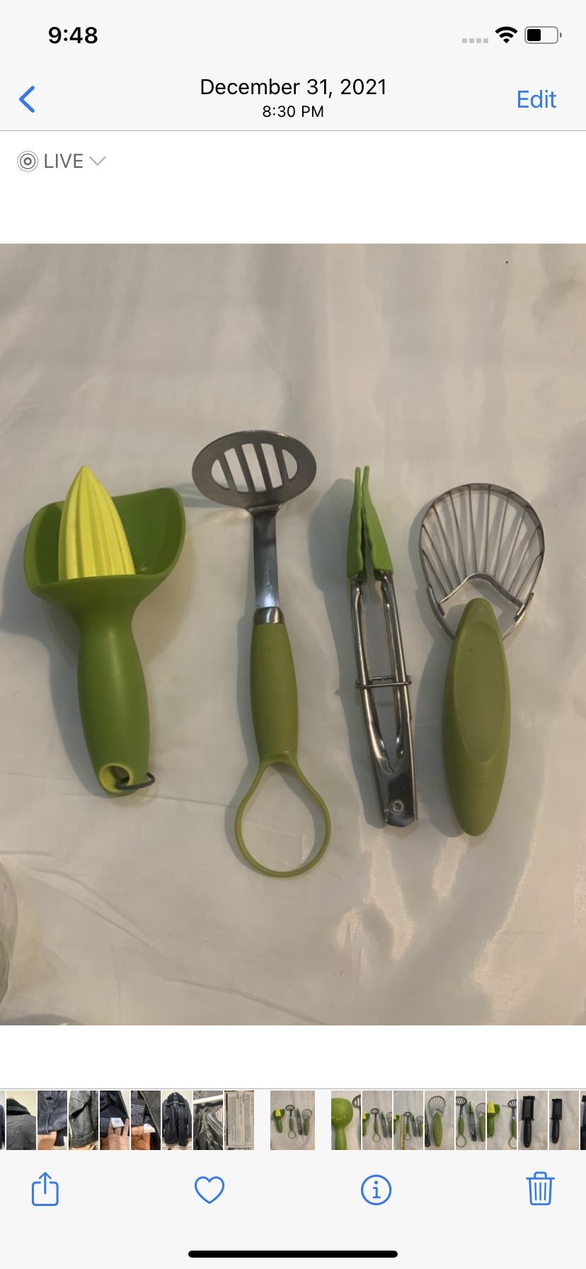 Kitchen Tools 4 Piece Lime Green Avacado Slicer, Masher,Lemon Squeezer & Tongs