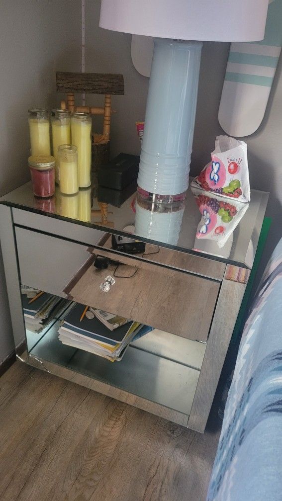 Excluding inside of drawer and backside, it is all mirror. Few cracks shown in pictures