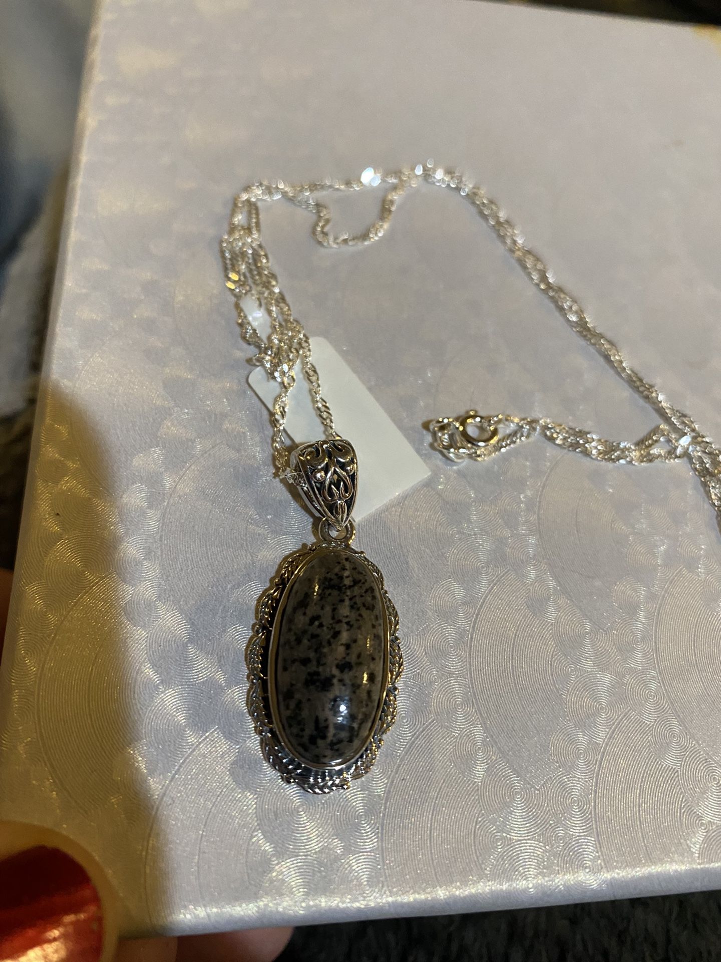 Artisan Crafted Natural Yooperlite Pendant in Sterling Silver 9.65 ctw With gorgeous Italian sterling silver chain 24 inches Brand new Comes in a lovely gift box Can ship in 1-2 days