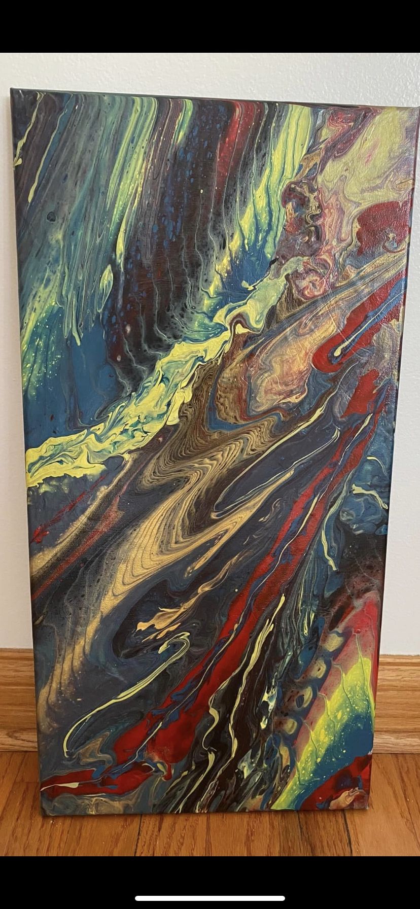 hand-painted paintings: method of pouring and mixing different colors of paint size: high 24 inches, wide 16 inchse. each painting for $50 each