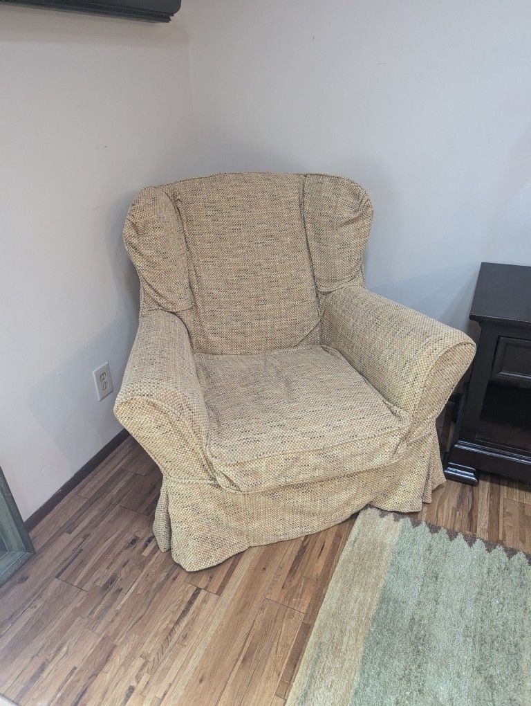 Great very comfortable two matching Arhaus slipcovered chairs. The yellow chair has an additional beige with brown cover that is under the yellow one. Non cats. Non smoking. Asking $400 for the set No holds. Cash please. You will need a pick up truck or a mini van or something like that to move it