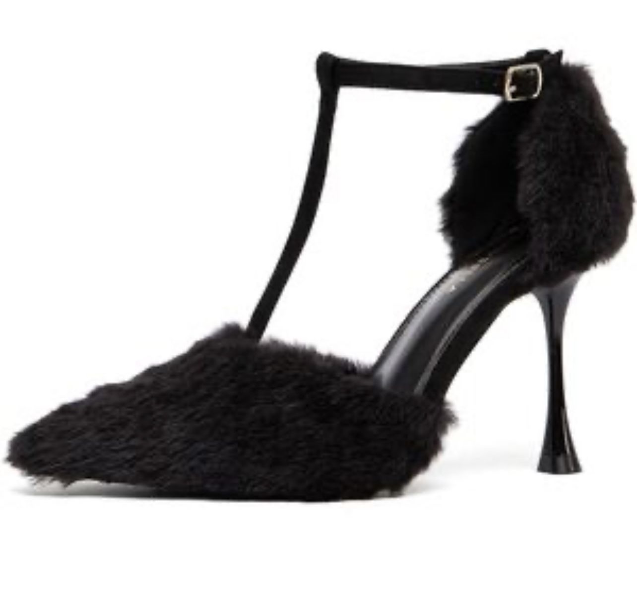NEWBELLA Pointed Toe Pump Black faux fur kitten heel shoes #glamour #heels #furry size 8.5 new