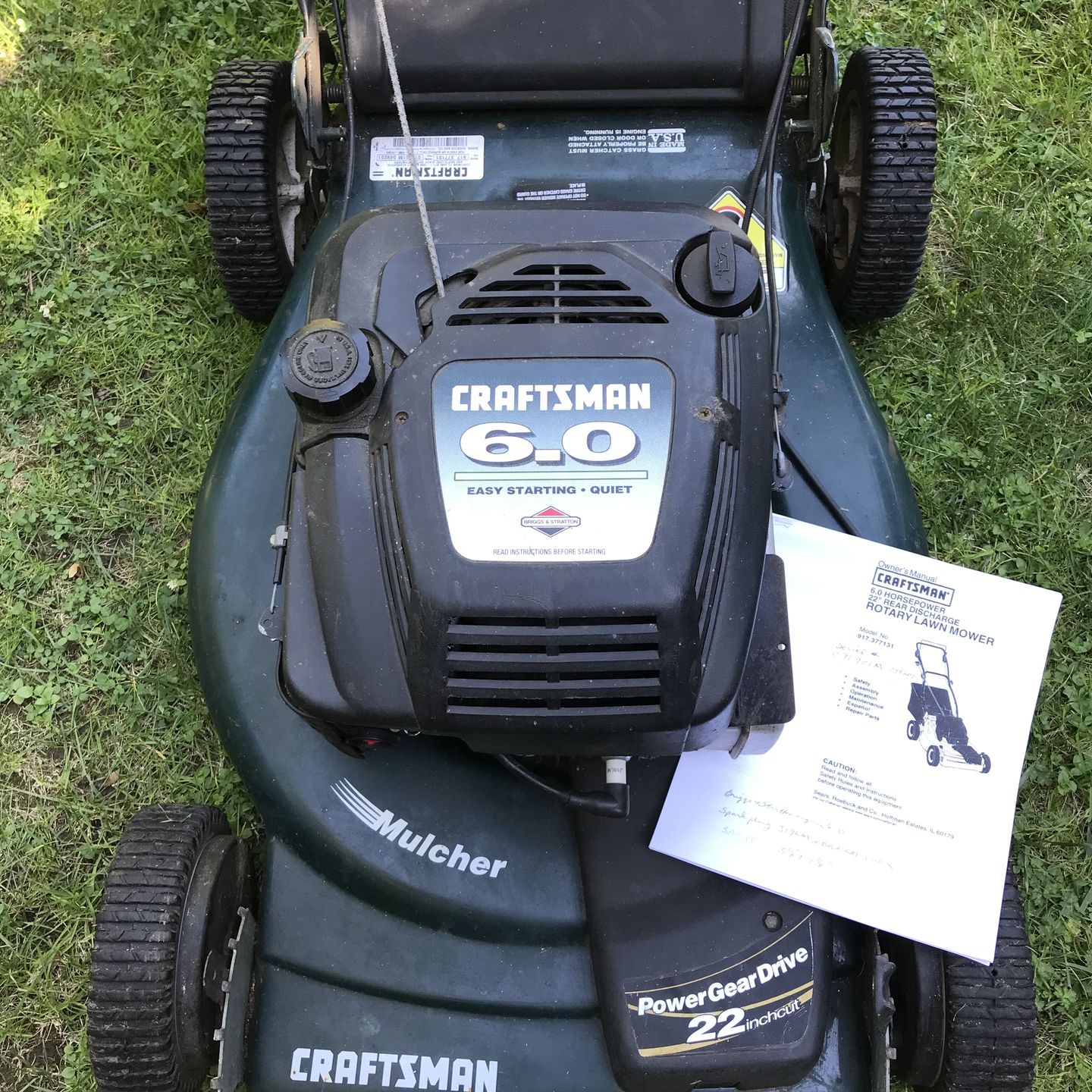 Craftsman 6.0 horsepower engine **Starts right up but will not remain running** Worked a year ago but not now I’m sure someone can fix it right up for use or resale, or use for parts Bag is in perfect condition as it’s primarily been used as a mulcher. Self-propel works, good body condition Make me an offer! Or I can sell parts if you need something (like the bag) $45 obo - MAKE ME AN OFFER Craftsman model (contact info removed)31 Manual incl Cash only pickup near Snohomish Hwy9/US2