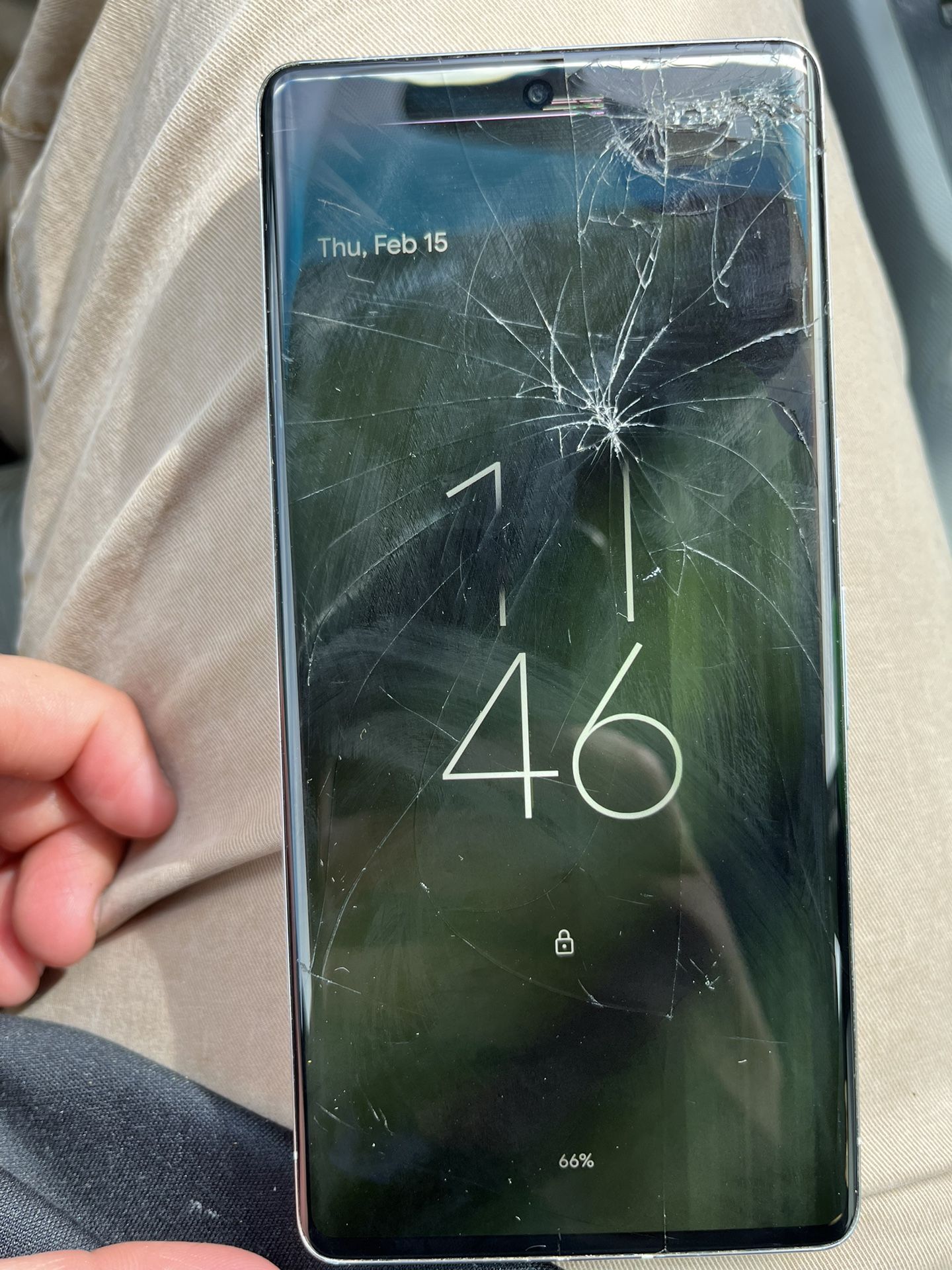 Unlocked Google 7 pro max pixel phone. Cracked screen 250$ obo.