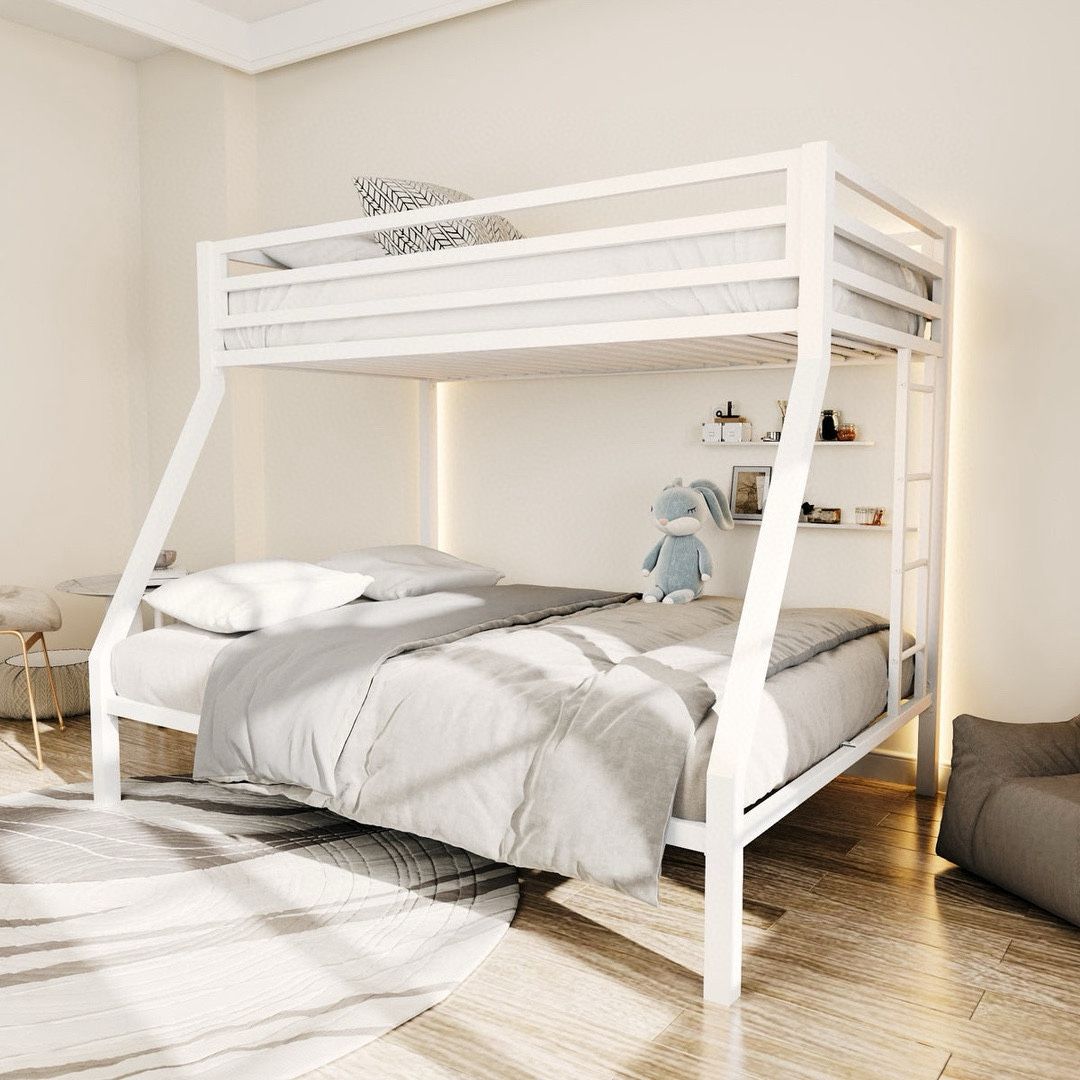 Metal Bunk Bed Twin Over Full Size with Stairs & Full-Length Guardrail for Teen & Adults, Noise Free