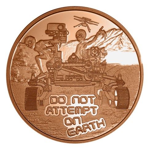 A "1 oz Copper Round - Do Not Attempt on Earth" refers to a collectible copper round, typically weighing one ounce, that features a design often related to extraterrestrial themes, usually with the phrase "Do Not Attempt on Earth" inscribed on it, implying it is not meant for use on our planet and could be intended for an alien or space-related context; it's often considered a novelty item for collectors fascinated by UFOs and space exploration. Buy with confidence 14-day return policy. Sold as is, please look at all pictures