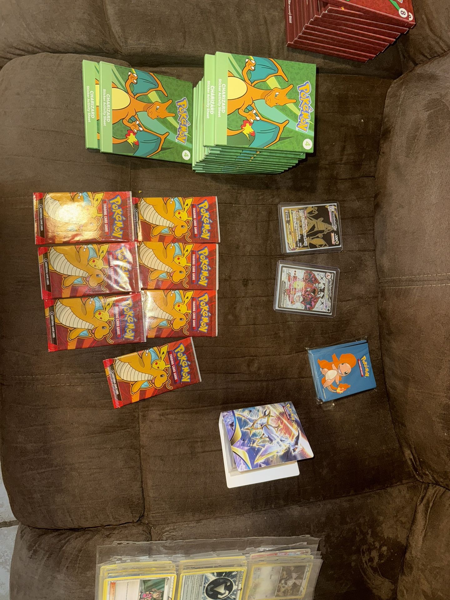 I’m cleaning out my house and found a lot of Pokémon stuff like some random cards, a flip book mostly empty with 3 cards I have like 50 brand new charmander design blank sleeves, like about 30+ McDonald’s Pokémon packs, all 4 collectable happy meal boxes when Pokémon was out and just some folder with random cards as well. I’m selling it all together just for the fact I need it all gone before we load a uhaul to move not selling nothing individually.