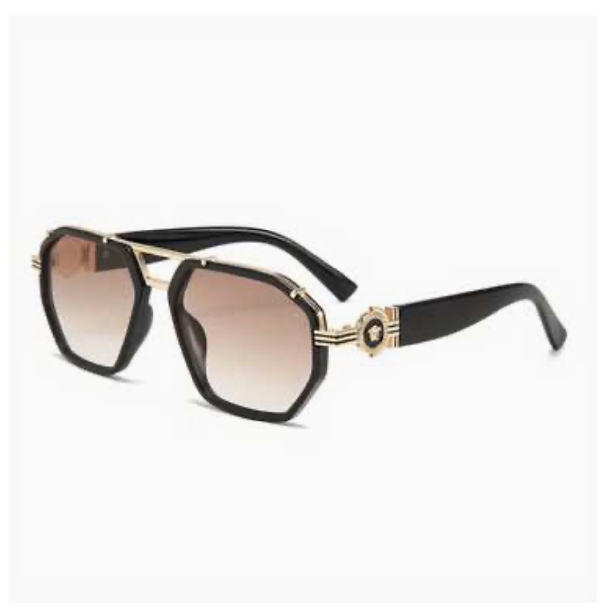Italian High Fashion V Designer Brand Black & Gold Luxury Aviator Sunglasses