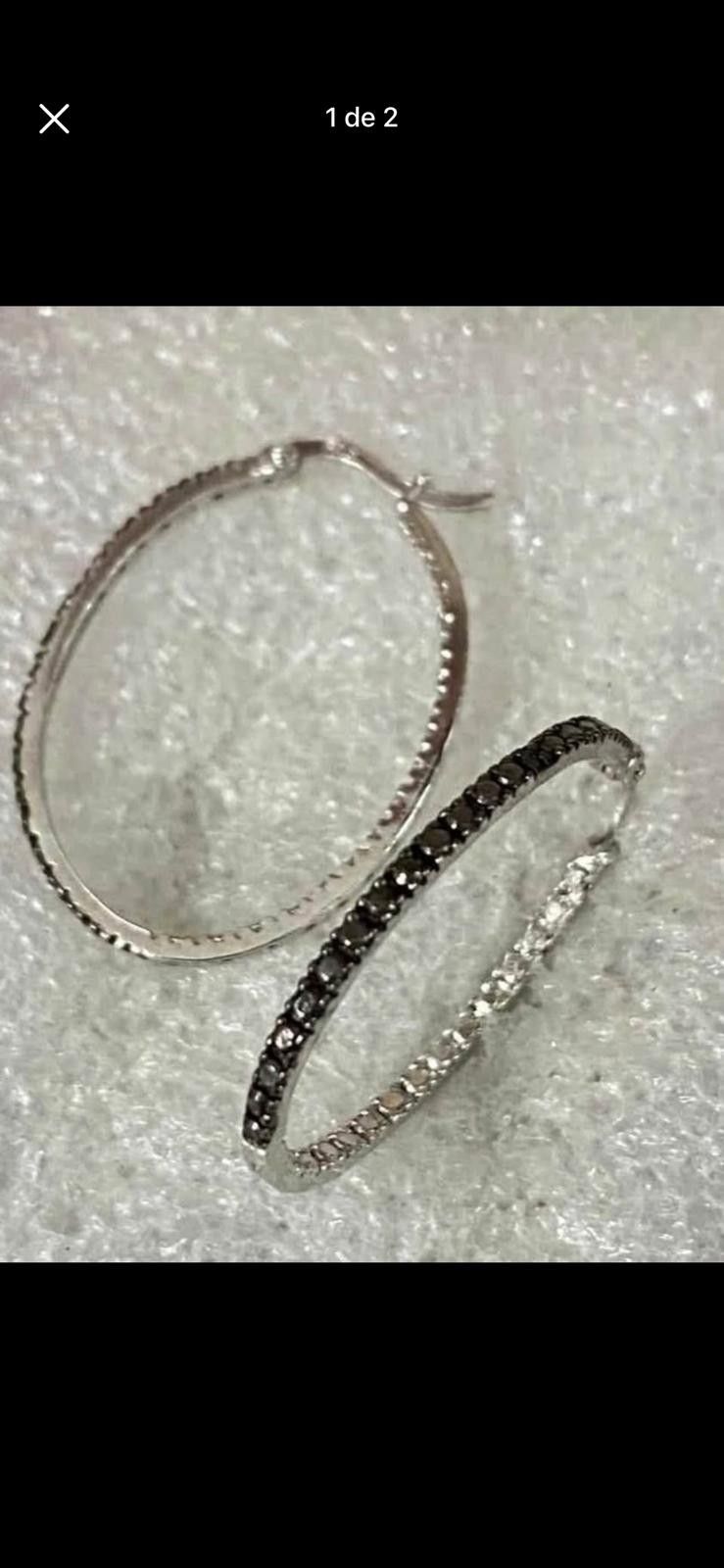 Aretes Argollas Plata 925 Piedras Azabache Joyería Antigua