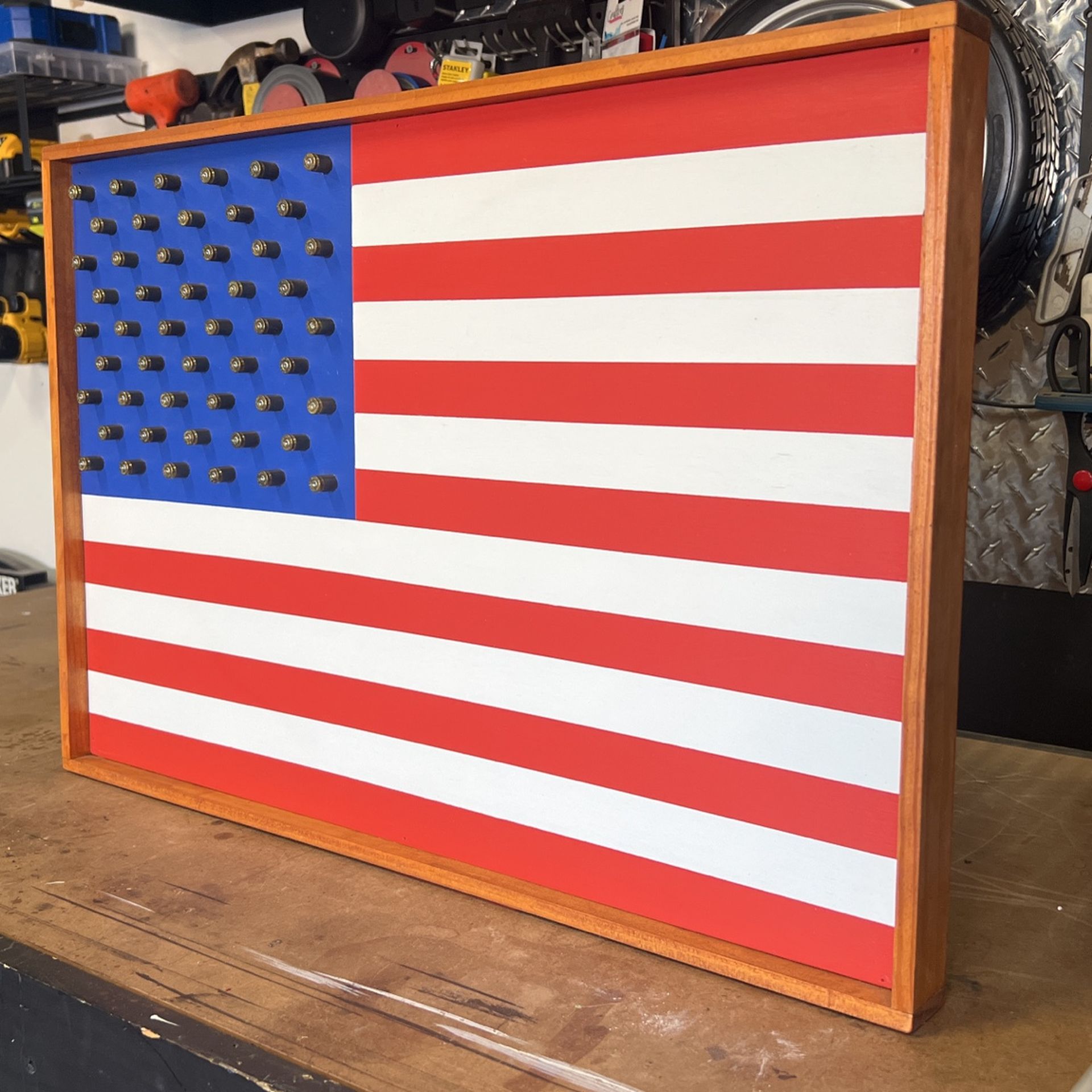 24”x16” unique wood flag hand painted and framed have 2 available