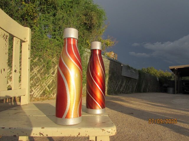 Custom candy painted stainless steel water bottles Painted with love and care. Much attention to detail with these bottles Price is for the set Let me know if you have any questions
