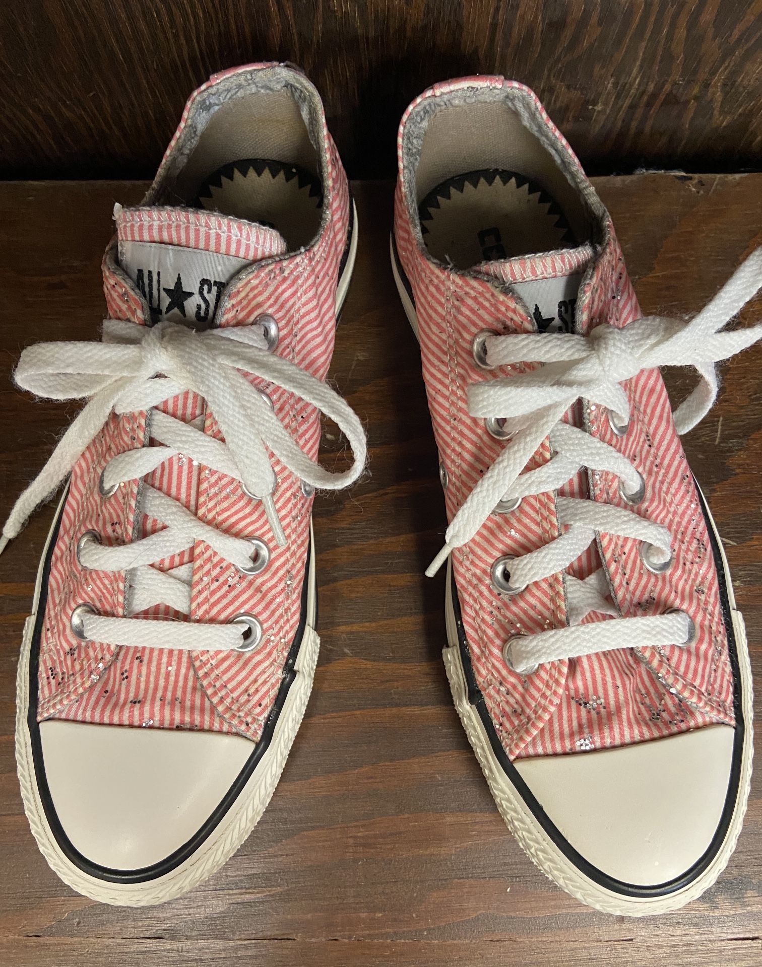 Converse Pink & White Pinstripe Glitter Sneakers Ladies Size 6