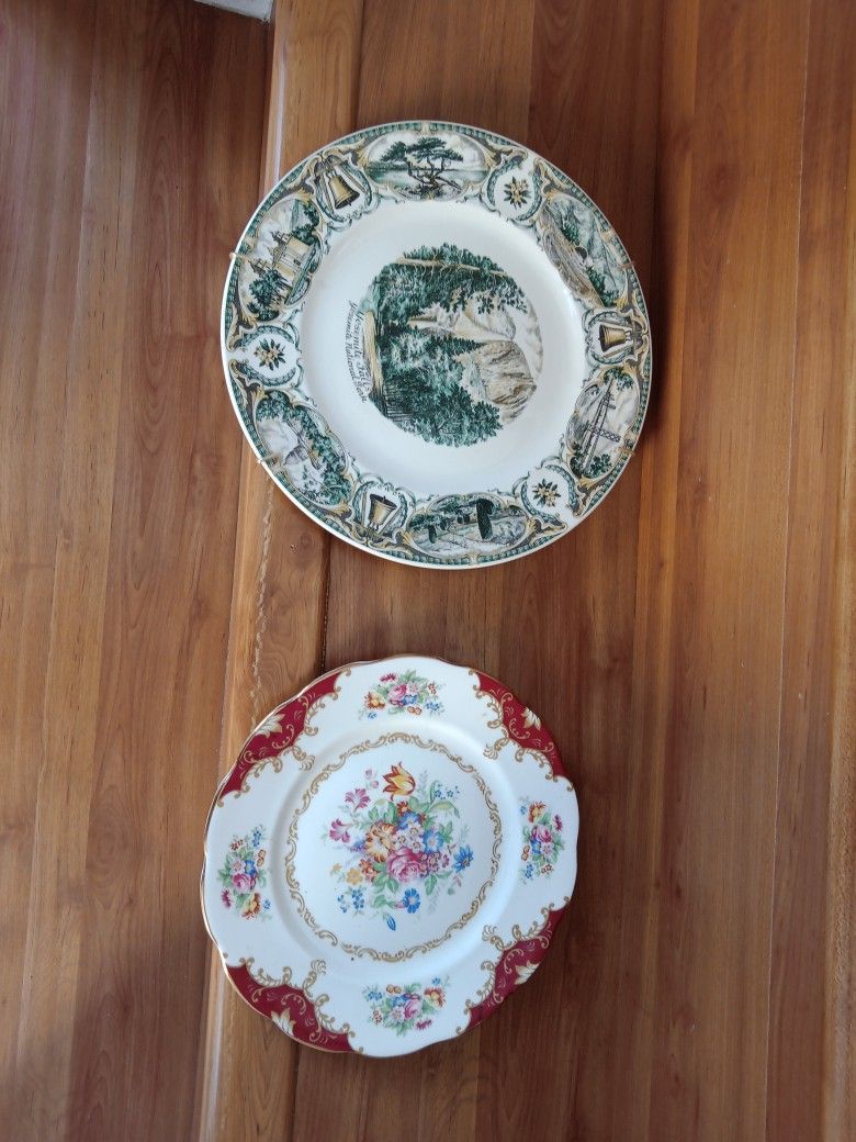 Vintage Salem China Co. Porcelain plate the golden state California Yosemite falls 11" and vintage luncheon plate Canterbury Royal Albert 9.25" in good condition.