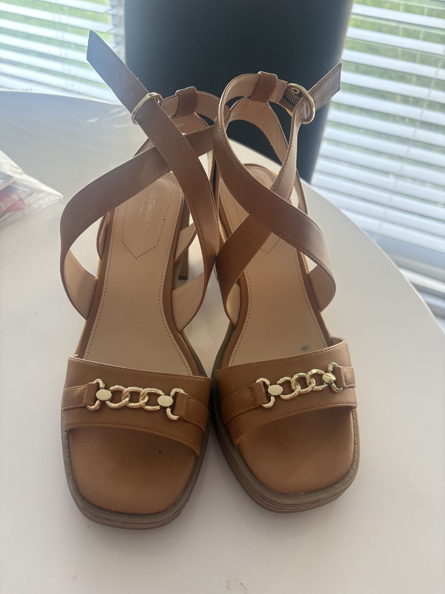 Liz Claiborne high heels, 3” tall open toes sandals. Nude color and Black. $20.00 each.