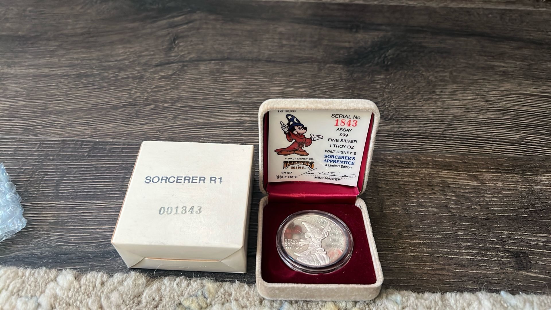 Sorcerer’s Apprentice 1 Oz. Silver Coin W/ Certification, Serial No. 1843, new condition. Price is firm.