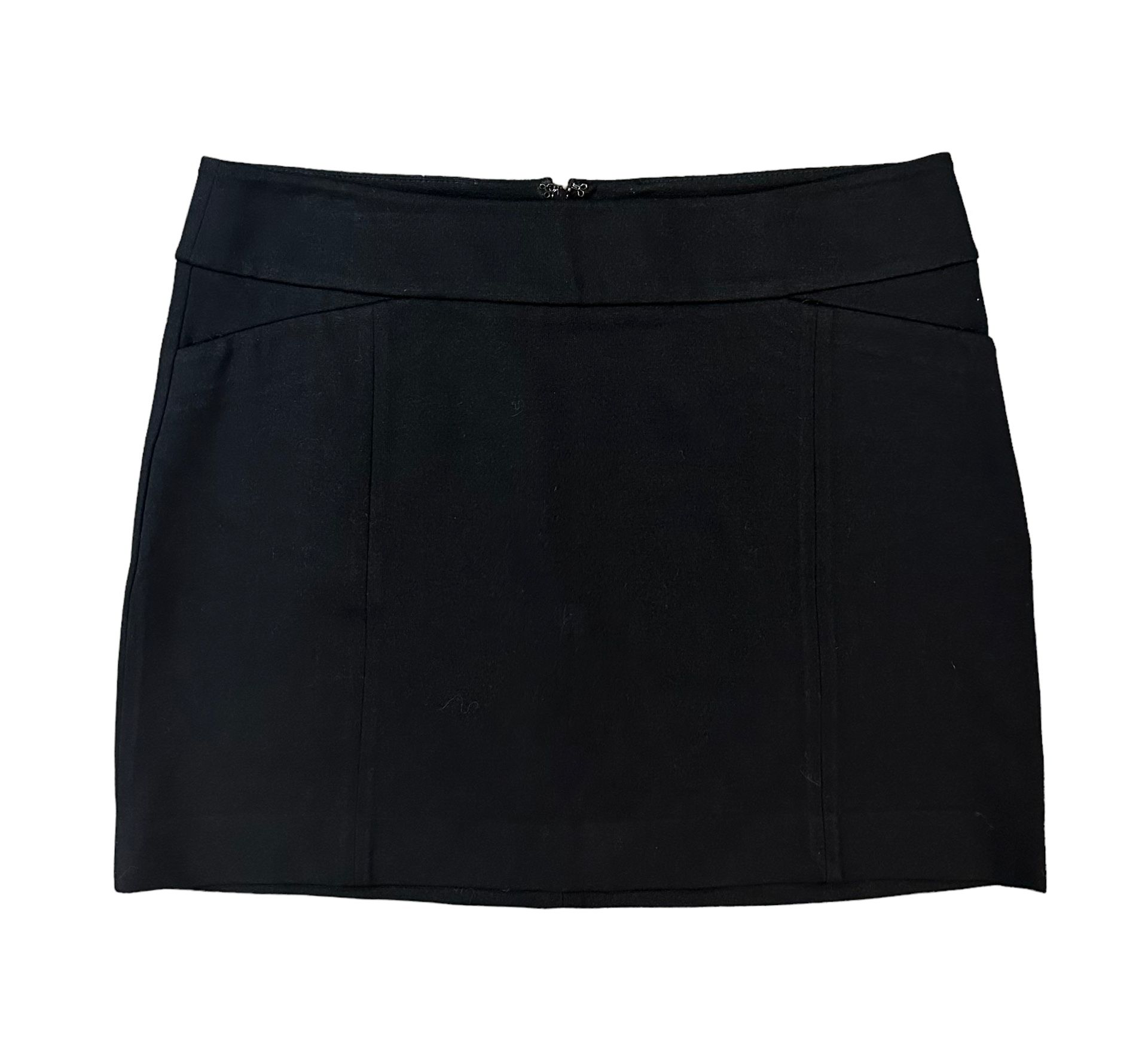 White House Black Market Black Mini Skirt Size Medium Stretch Pockets Zip Back