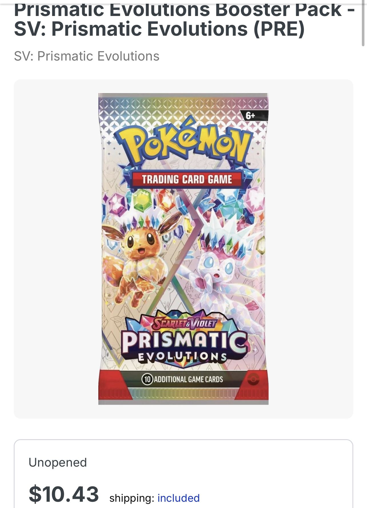 Prismatic evolutions booster pack 6 in total