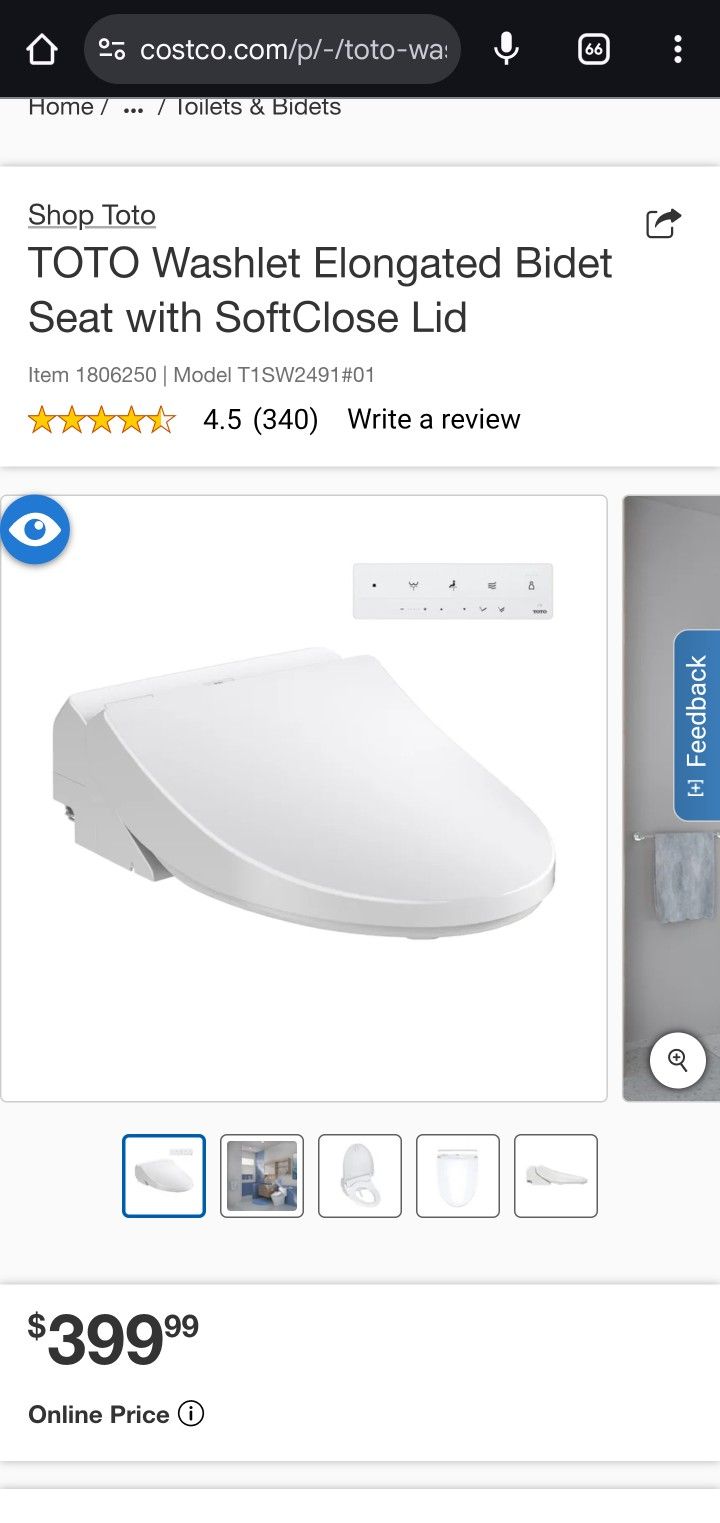 TOTO Washlet Bidet Seat with Softclose Lid - $399 at Costco
