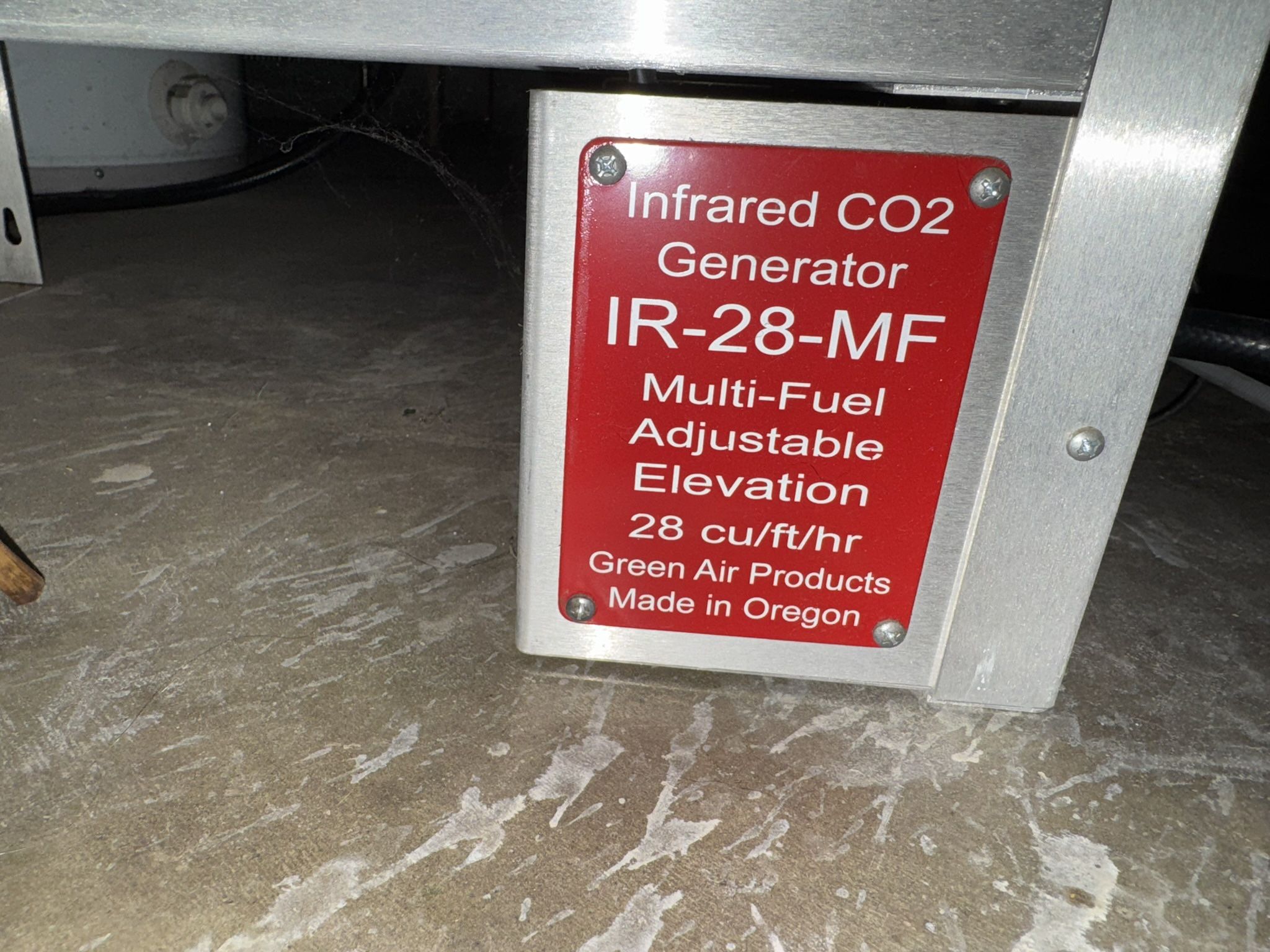 Green air made in Oregon co2 generator. Propane version. Great for green houses or grow rooms. Comes with hose but no propane tank. This thing is awesome. Works great.